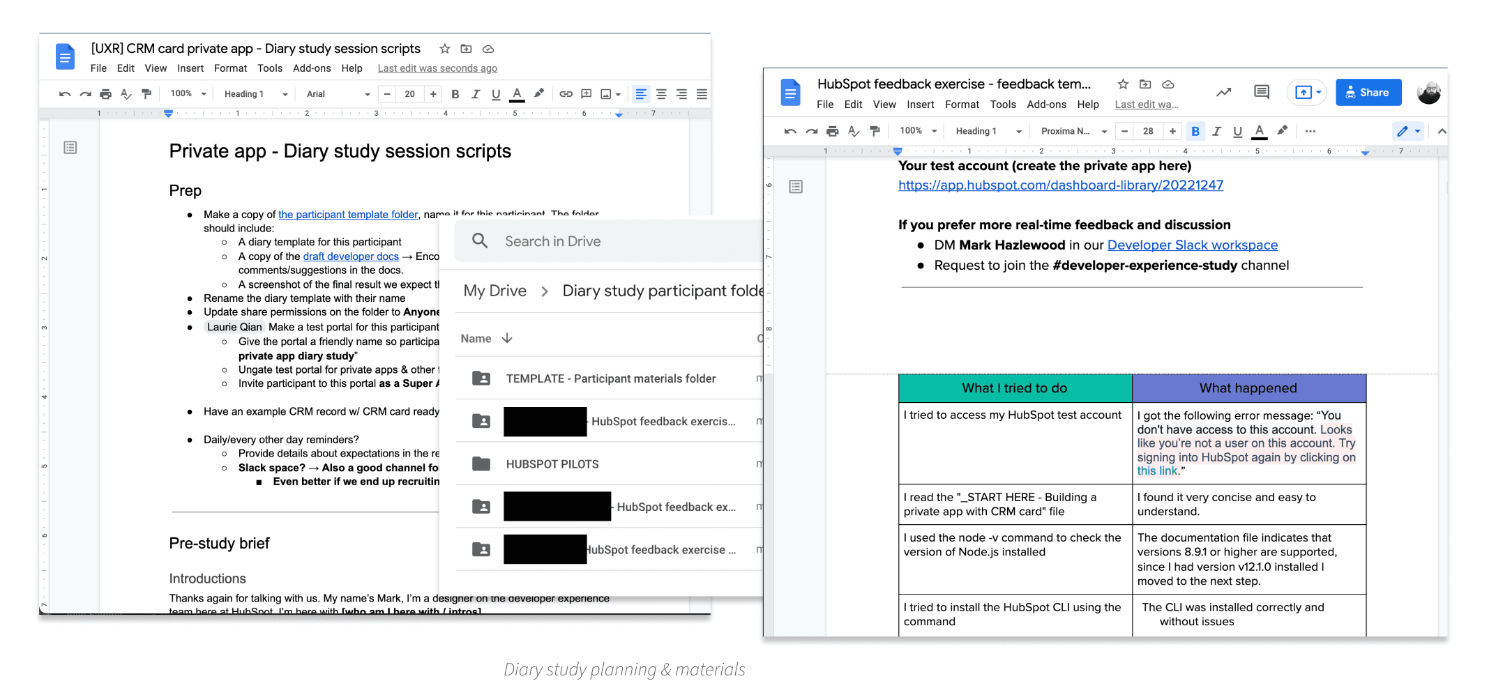 To validate the Private Apps experience over time, I conducted a diary study with internal and external developers, asking them to use the new system and log their experience over a 2-week session. Participants were asked to highlight pain points, confusion, and areas of friction in their workflows. This longitudinal approach was meant to provide deeper insights into challenges like scope usability, token management, and API onboarding.