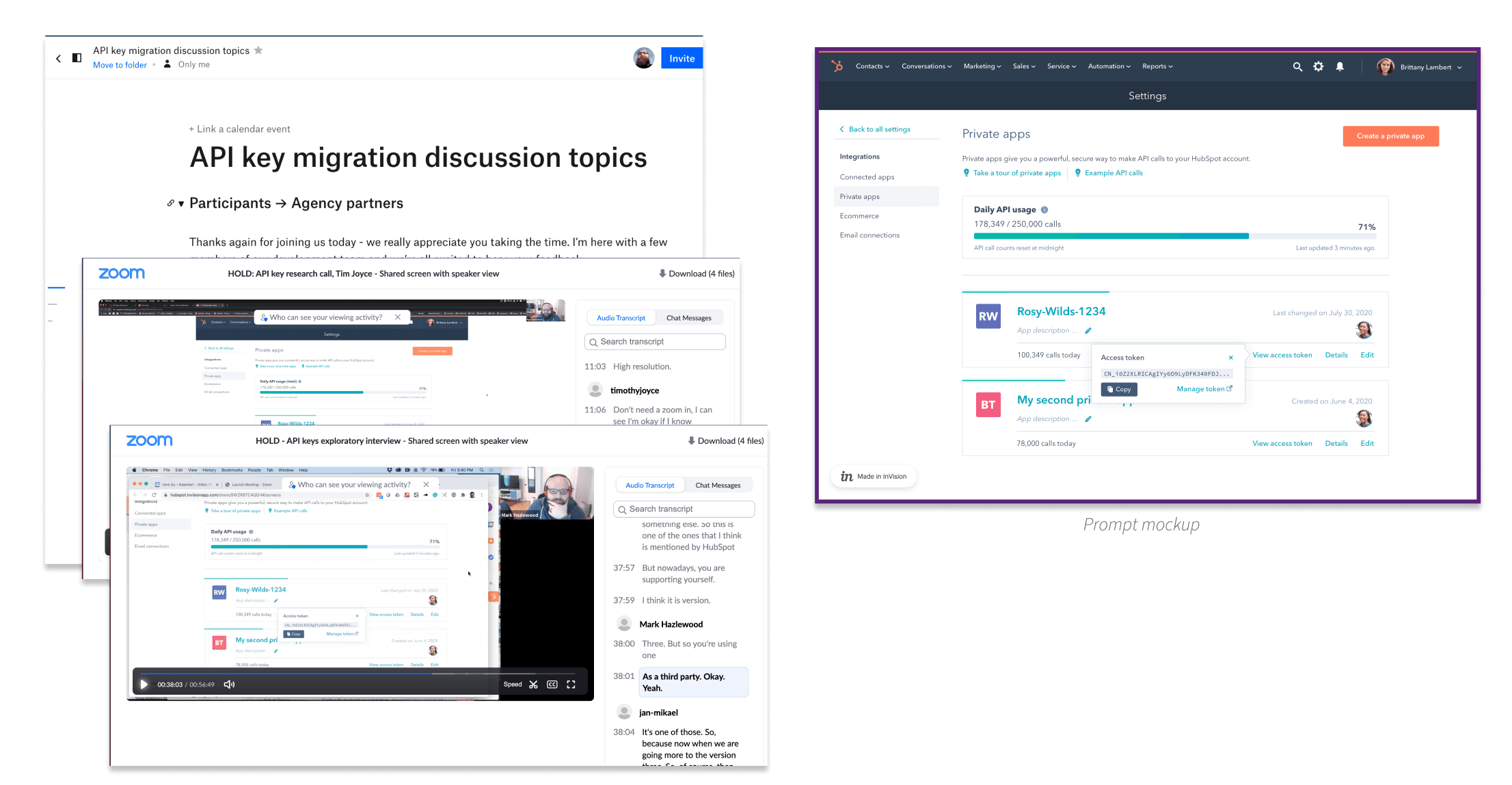 We sought to understand what exactly developers found valuable about API keys. We had a strong suspicion that they were much easier to use than OAuth apps, and wanted to dig into that further. I planned and conducted a series of interviews with existing API key developers which focused on these questions and presented an early concept for private apps.